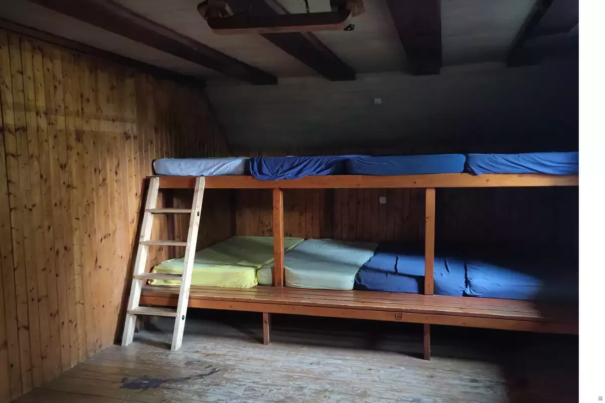 und zwei Schlafräume als Matratzenlager (10 und 15 Plätze) in Stockbetten im Obergeschoss.