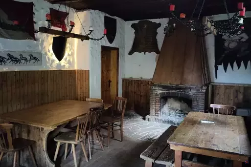 Aufenthaltsraum mit offenem Kamin und zwei Schlafräume als Matratzenlager (10 und 15 Plätze) in