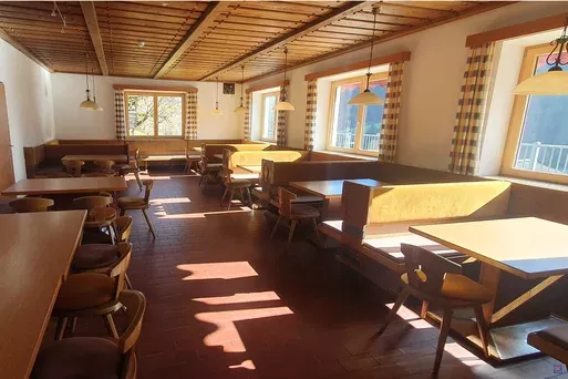 Der Speisesaal kombiniert alpine Gemütlichkeit mit modernem Komfort und bietet den idealen Rahmen für gemeinsame Mahlzeiten und festliche Anlässe.