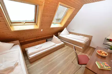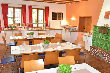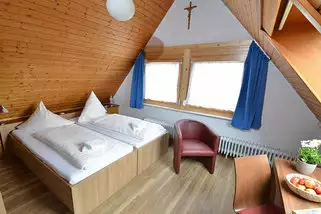 Das Don Bosco Haus verfügt über 19 Zimmer mit 45 Betten in verschiedenen Kategorien. Ob Sie als Jugendgruppe zu uns kommen und im Mehrbettzimmer das Wir-Gefühl und den Zusammenhalt einer fröhlichen Gruppe erleben oder nach einer langen Radtour im komfortablen Doppel- oder Einzelzimmer himmlische Ruhe und den Komfort kuschliger Betten genießen möchten- es ist für jeden was dabei. Am Morgen erwartet Sie unser reichhaltiges Frühstücksbuffet und auch zu den anderen Mahlzeiten dürfen Sie von einem saisonalem & regionalen Buffet wählen. Zu jeder Mahlzeit bieten wir Ihnen selbstverständlich auch eine vegetarische Alternative.