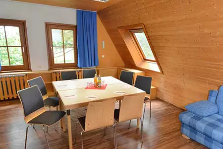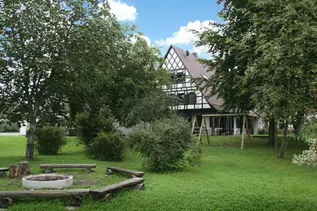 Im Haus befindet sich eine Kapelle die Sie gerne nach Abspache nutzen dürfen. Das Haus verfügt über einen Tagungsraum mit moderner Tagungstechnik sowie drei Gruppenräume. Um das Haus erstreckt sich eine weitläufige Grünanlage mit zahlreichen Sitz- und Spielmöglichkeiten. Langeweile ist bei uns ein Fremdwort. Tagsüber können sich unsere sportlichen Gäste bei einem freundschaftlichen Match auf dem Volleyballplatz, auf der Spielwiese oder beim Tischtennis messen. Am Abend treffen sich alle auf dem Lagerfeuer- und Grillplatz wieder.