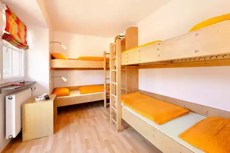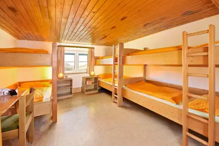 Doppel- und Mehrbettzimmer, meist Etagenbetten; im Neubau 4 DZ und 1x4Bettzimmer mit DU/WC; im Altbau 1 EZ und 2 DZ mit DU/WC. Sanitäre Einrichtungen im Neubau sind alle Zimmer mit fließend Wasser, 8 DU / 6 WC. Im Altbau 2 Waschräume mit je 2 DU und je 5 Waschbecken / 4 WC.