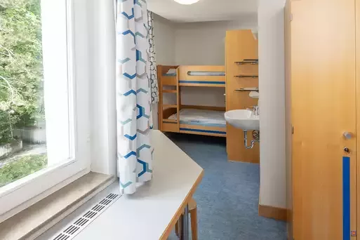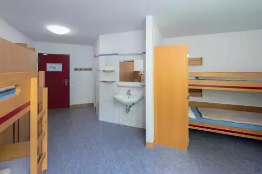 Die Unterkunft ist teilweise behindertengerecht: Von vier barrierefreien Vierbettzimmern sind jeweils die unteren Betten für Rollstuhlfahrer geeignet. Insgesamt acht Betten. Waschbecken im Zimmer. Sanitäre Einrichtungen (Dusche und WC) sind unseren barrierefreien Zimmern direkt zugeordnet.