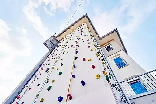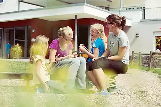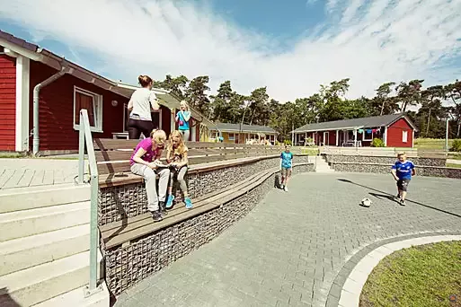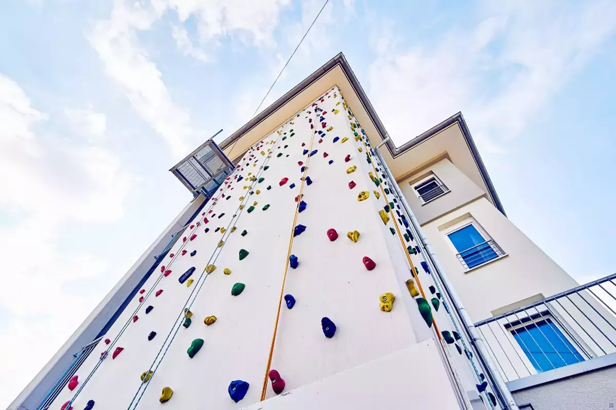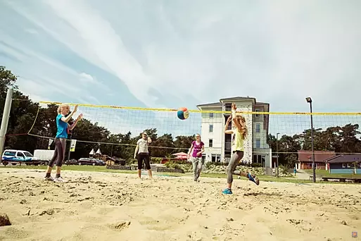- Großer Außenbereich mit Kletterwand, Kunstrasenplatz, Beachvolleyballfeld, Kleinkinder-Spielgeräte, Lagerfeuer- und Grillplätzen.