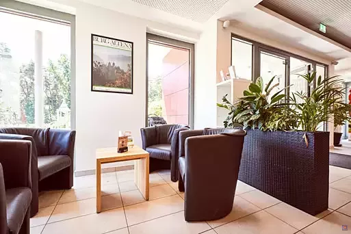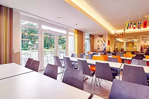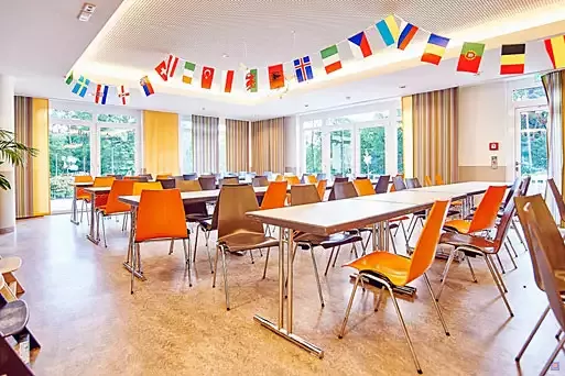 - Sechs Gruppen-/Seminarräume von 21 bis 62 qm, alle mit Tageslicht. Internet-und TV- Anschluss, verdunkelbar. Zum Teil mit Außenterrasse