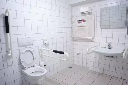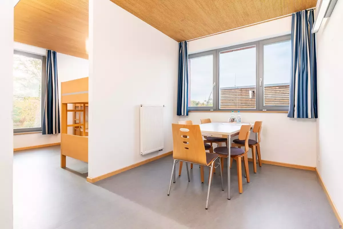 Die Unterkunft ist komplett behindertengerecht: Von sechs barrierefreien Vierbettzimmern sind jeweils die unteren Betten für Rollstuhlfahrer geeignet. Insgesamt zwölf Betten. Sanitäre Einrichtungen (Dusche und WC) für Rollstuhlfahrer im Zimmer.