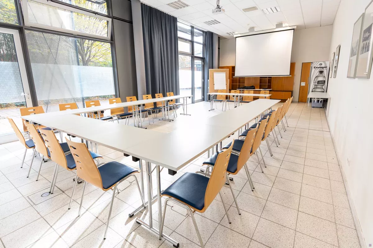 Jeweils zwei bzw. drei Räume lassen sich kombinieren und ergeben somit größere Seminarräume mit 110 qm bzw. 210 qm.