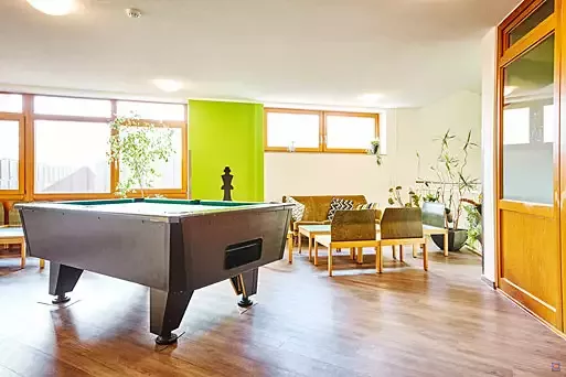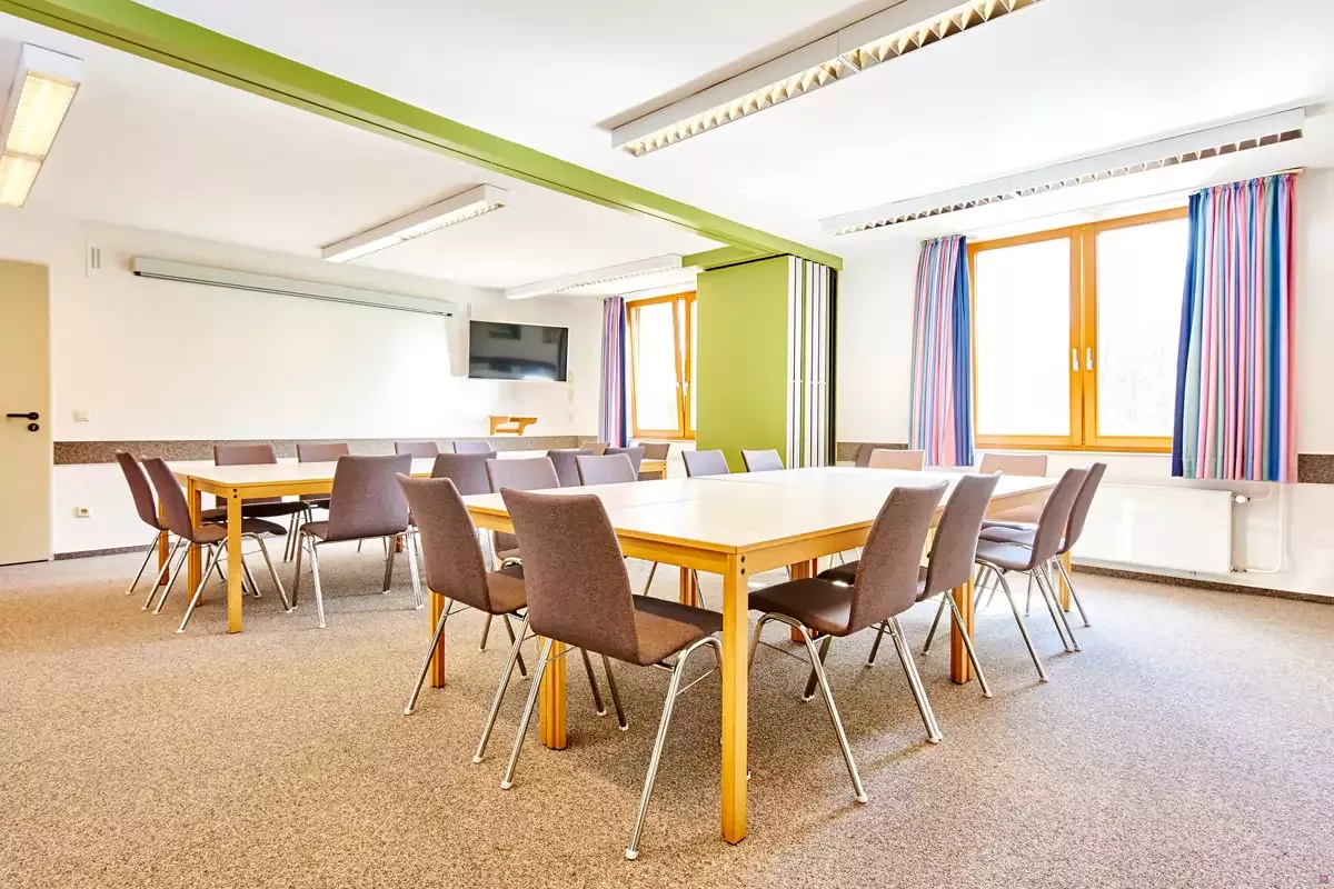 Unsere Zimmer sind gemütlich und alle mit Waschbecken und Schränken ausgestattet, viele auch mit Dusche und WC auf den Zimmern. Die hellen, freundlichen Tagesräume laden zum Spielen, Tagen oder zum Musizieren ein. Abends nutzen unsere Gäste sie auch gern zum Fernsehen oder einfach zum entspannten Zusammensitzen. Gruppen mit eingeschränkten Personen schätzen die Möglichkeit, den Speisesaal und die Gruppenräume barrierefrei erreichen zu können.