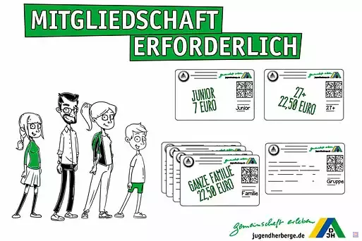 Alle Preise pro Person und Übernachtung inkl. Bettwäsche. Gruppenmitgliedschaft erforderlich! Bei Gruppen der Aus- und Fortbildung zahlen Gruppenleiter /-innen und Teilnehmer den Gruppenpreis. Bei Gruppen, die keine Aus- und Fortbildung durchführen, zahlen Gäste bis 26 Jahre den Gruppenpreis, Gäste ab 27 Jahre zahlen den regulären Einzelpreis.
