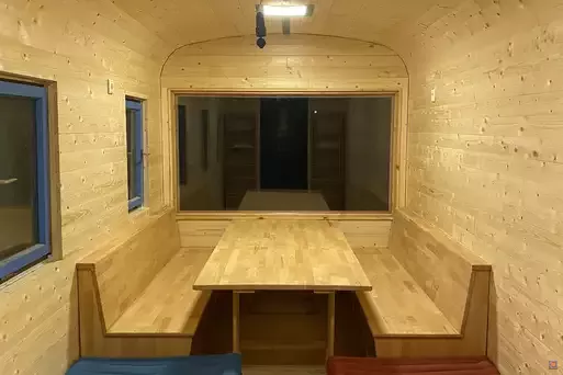 Platz für 30 Personen, fließend Wasser, Strom, Sanitäranlagen, Kochstelle, Dusche, Aufenthaltsraum
