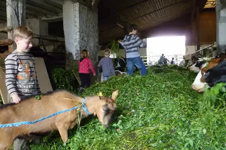 Ob bei Sonne oder Regen - Kinder finden hier immer ein Abenteuer. Das Personal des Bauernhofs ist auf neugierige Kinder sehr gut vorbereitet. Und neugierige Kinder sollten sich für den maximalen Spass inklusive Bachbegehung möglichst ein Paar Gummistiefel überziehen;-) Die 2+3 Betten unterm Giebel sind für ältere Jungs und Mädels der Übernachtungshit schlechthin. Die Schlafsäle und Zimmer sowie die Gemeinschaftsbäder sind einfach und angenehm. Feiern ist sowohl am Lagerfeuer als auch im großzügigen Gruppenraum am Ofen möglich. Das Essen kann sehr gut in der gut ausgestatteten Küche zubereitet werden. Frische Milch und Apfelsaft gibt es ab Hof. Wir kommen wieder :-)