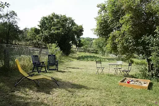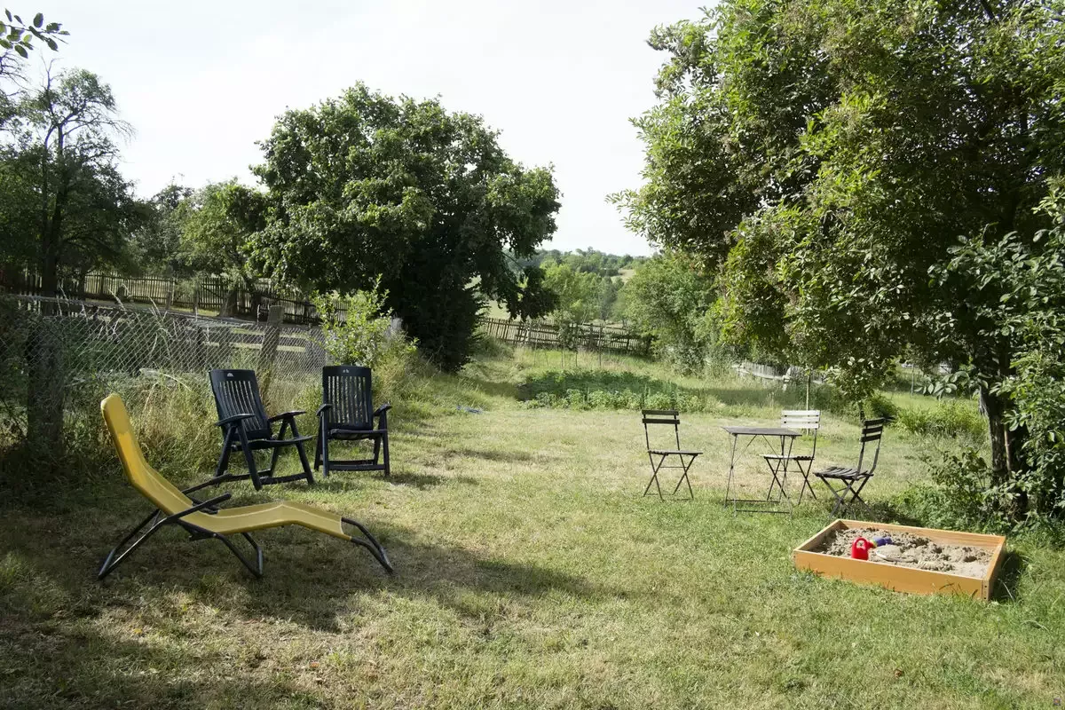 Auf dem Hof direkt vis à vis zu den Wohnungen liegt eine Terrasse, außerdem gibt es hinter der Scheune einen großen Garten mit Gartenmöbeln, Liegewiese, Grillmöglichkeit und Feuerkorb.
