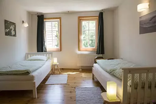 Es gibt Zimmer mit Doppelbetten bzw. zwei Einzelbetten, sowie ein Dreibettzimmer.