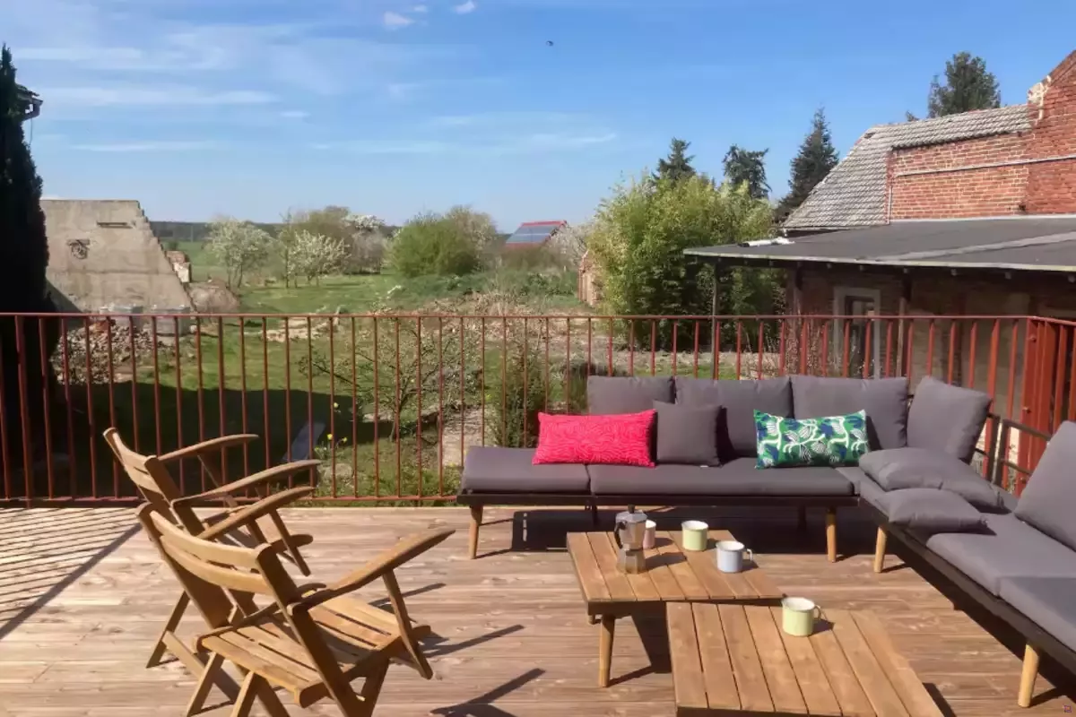 Hier könnt Ihr entspannen, die riesige Terrasse genießen, unter der Veranda der Sommerküche verweilen, mit Freund*innen, Familie oder Bekannten zusammen essen, reden, feiern, planen, spielen, arbeiten und entspannen, tags den Wildgänsen und Kranichen zusehen und nachts den atemberaubenden Sternenhimmel bestaunen.