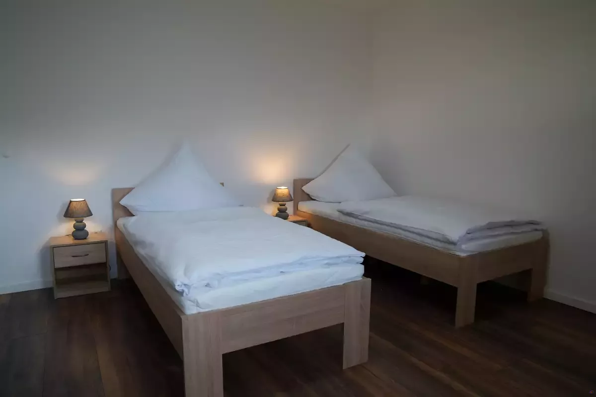 Das Gasthaus 1 verfügt über elf komfortable Zweibettzimmer, verteilt auf vier Schlafzimmer im Untergeschoss, vier Schlafzimmer im 1. Obergeschoss und drei Schlafzimmer in der Wohnung. Auf allen Etagen stehen Ihnen jeweils ein Bad mit Dusche und WC zur Verfügung. Waschmaschine und Wäschetrockner sind vorhanden.