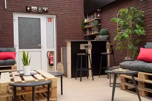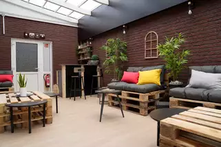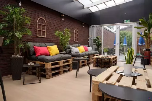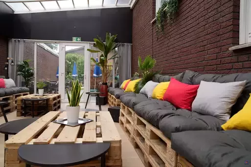 Mehrere gemütliche Gemeinschaftsräume laden zum Zusammensitzen ein. Besonders beliebt ist der Wintergarten mit Lounge-Möbeln sowie einer kleinen Theke mit Kühlschrank.
