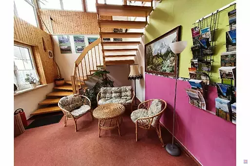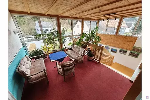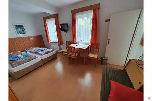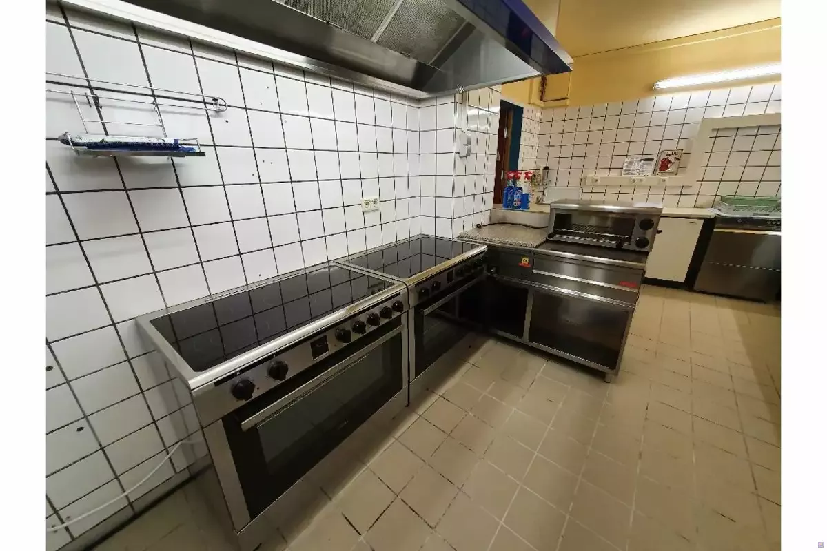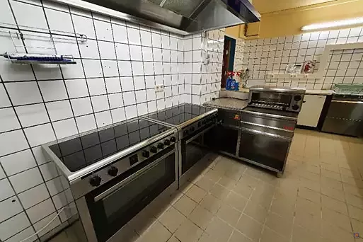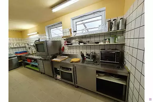 Im Erdgeschoß befindet sich die Küche, Speisesaal, Aufenthaltsraum mit Theke, Sitzgruppen und großem TV, ein großer Saal mit Spielgeräten, Bühne, Musikanlage und Tanzfläche, im 1. & 2. OG befinden sich die Zimmer alle mit Dusche/WC u. im 1.OG eine Dachterrasse und ein Raucherzimmer. Die Küche ist ausgestattet mit Kühlschänken, Gefrierschränken, Gastro-E-Herd, Backofen, Gastro-Geschirrspüler, Töpfe, Pfannen und Geschirr. Grillplatz & Parkplätze befinden sich im Hof.
