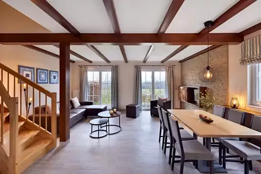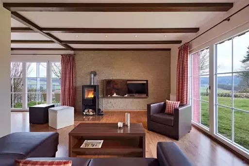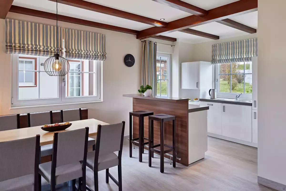Die komplett ausgestattete Küche verfügt über Backofen, Spülmaschine, Senseo-Kaffeemaschine, Wasserkocher, Toaster, Kühlschrank mit Gefrierfach sowie Geschirr und Besteck. Im Wohnbereich befindet sich ein Flat-TV und teilweise ein Kamin. Auch hat jedes Ferienhaus einen Balkon & eine Terrasse. Für das bequeme Parken befinden sich 2 Stellplätze (1 Carport) direkt vor der Tür. Die Schlafzimmer sind hell eingerichtet und in jedem Ferienhaus befinden sich mindestens 2 Badezimmer. Kinderausstattung ist auf Wunsch 1x kostenfrei erhältlich (Treppenschutzgitter, Kinderstuhl, Wickelauflage etc.).