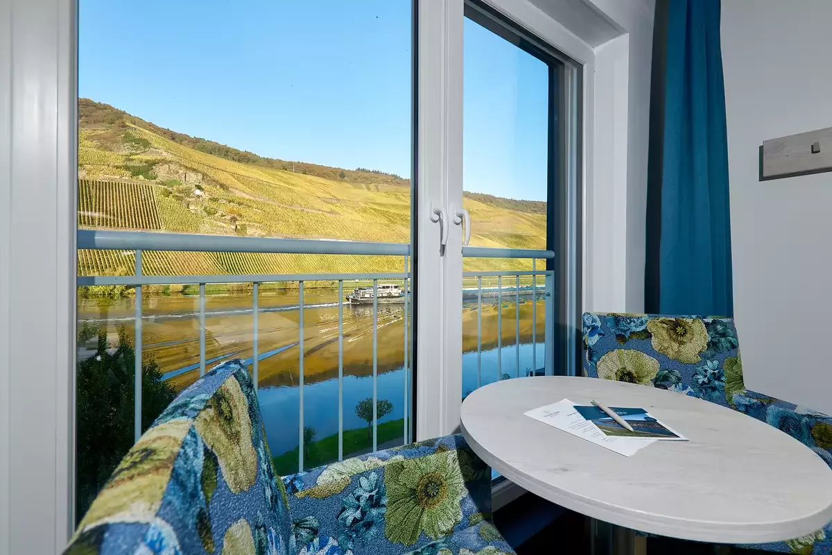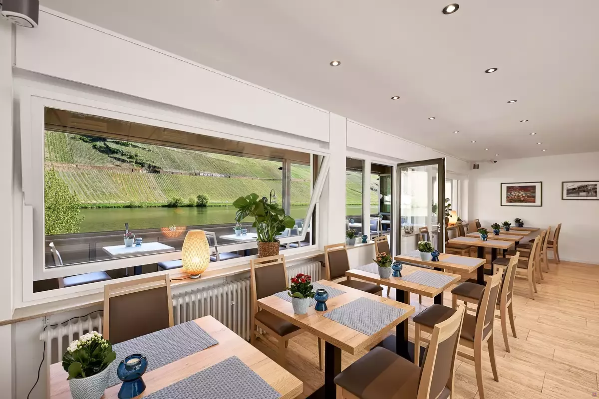 Die einmalige Lage direkt am Moselufer wird Sie begeistern. Gleich gegenüber der „Wehlener Sonnenuhr“, einer der legendärsten Weinlagen Deutschlands, liegt Ihr Moselhotel.