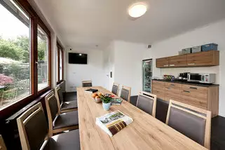 Für Gruppen zwischen 10 - 34 Personen kann das Gebäude nur komplett zur Selbstversorgung gebucht werden.