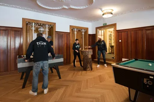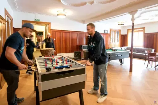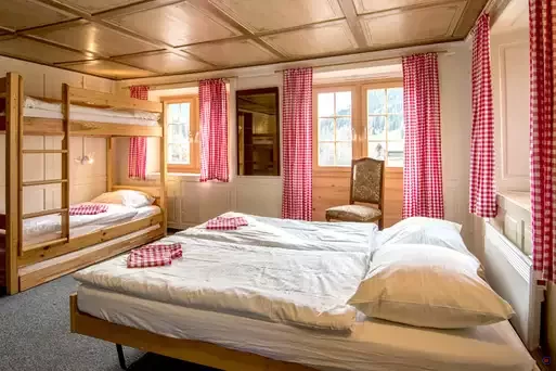 Hier findet ihre Gruppe richtiges Hüttenfeeling: Das Haus bietet einfache 2er, 3er und 4er Zimmer, sowie 6er bis 9er Mehrbettzimmer. Für alle Zimmer stehen ausreichend Etagenduschen zur Verfügung. Treffpunkt der Gruppe wird der geräumige Aufenthaltsraum, der mit einer Musikanlage, Beamer und Leinwand ausgerichtet ist. Auch der Kicker und Billardtisch sorgen für Unterhaltung.