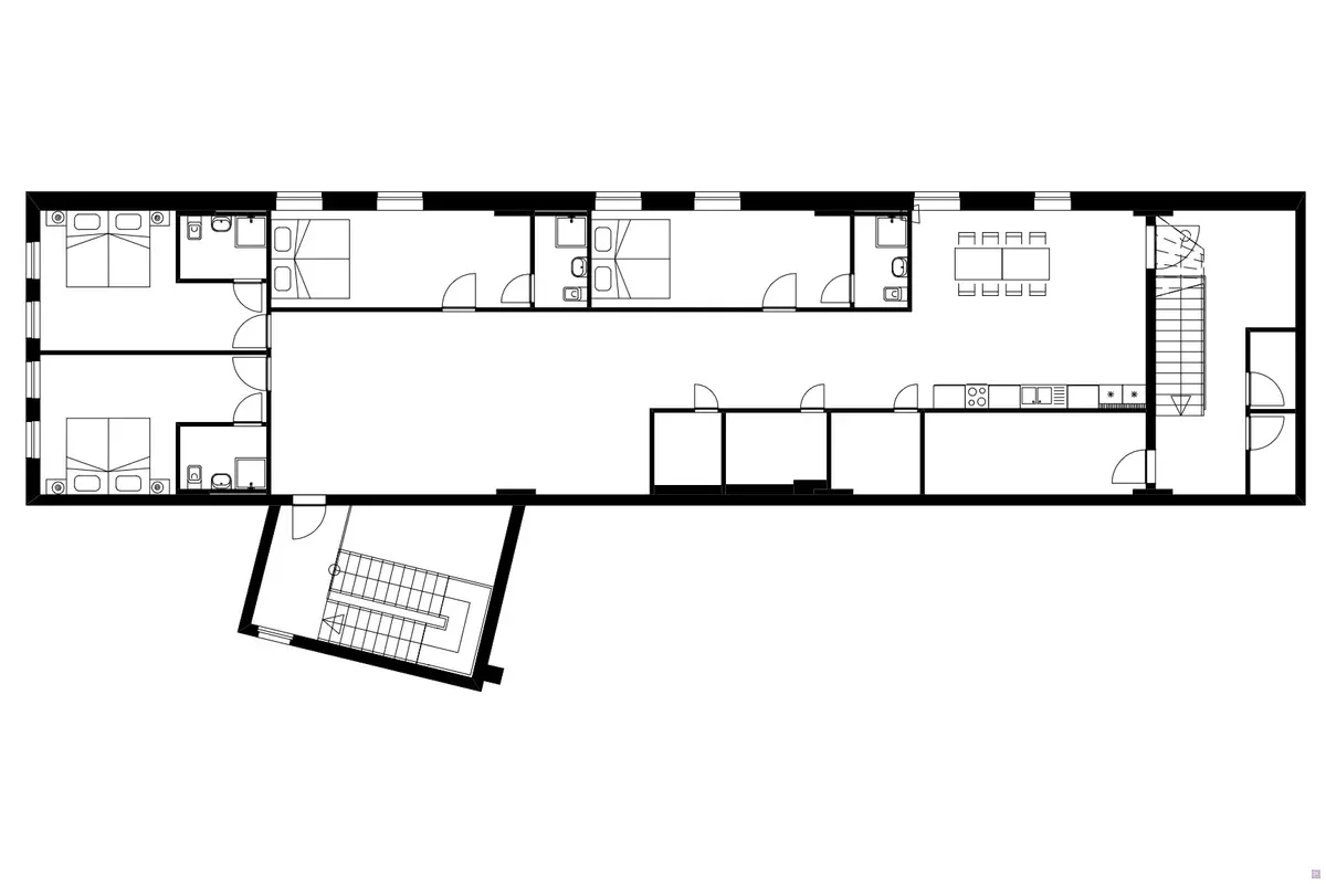 Eine weitere Ferienwohnung im HostelStyle für 18 Personen (Aufbettung möglich) ist ein paar Schritte entfernt und zusätzlich buchbar.