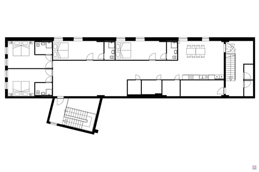 Ihr residiert im 1. Obergeschoss eines markanten Gebäudes. Dank des eigenen Eingangs und der riesigen Garderobe seid ihr völlig unabhängig.