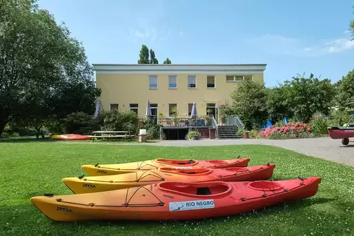 Unser naturbelassenes Gelände liegt direkt an der Bega und schließt sowohl das Seminarhaus als auch die Kanustation ein. Das Haus ist ausgestattet mit zwei Seminarräumen wovon einer als Multifunktionsraum mit integrierter Küche dient. Übernachten Sie in unseren Mehrbettzimmern im Obergeschoss, in unserem urigen Matratzenlager oder aber in eigenen Zelten direkt am Fluss.