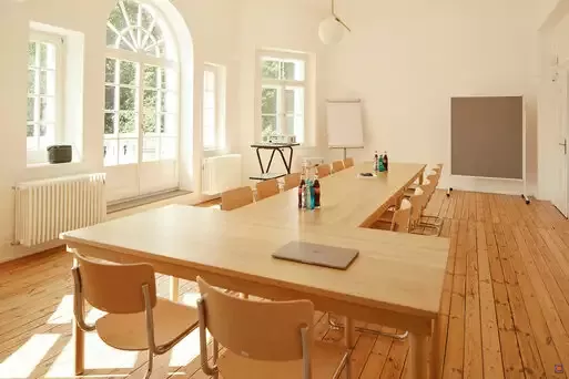 Flipchart, Whiteboard, Video-Beamer und Leinwand sind vorhanden.