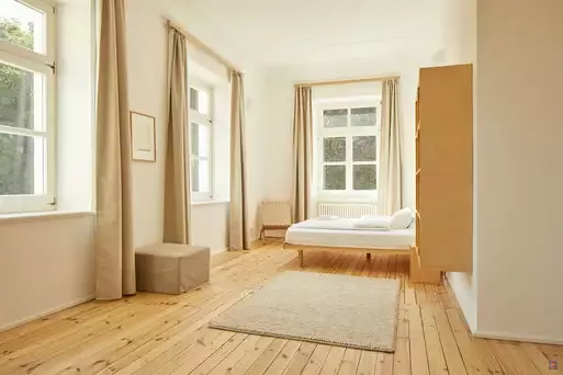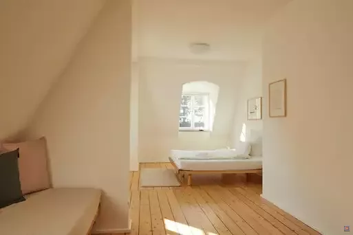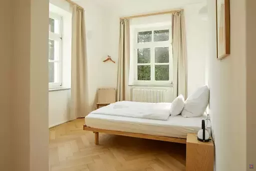Die Zimmer des denkmalgeschützten Hauses wurden aufwendig und mit hohem ökologischem Anspruch saniert. Sie sind hell und freundlich eingerichtet und verfügen jeweils über ein eigenes Bad mit ebenerdiger Dusche.