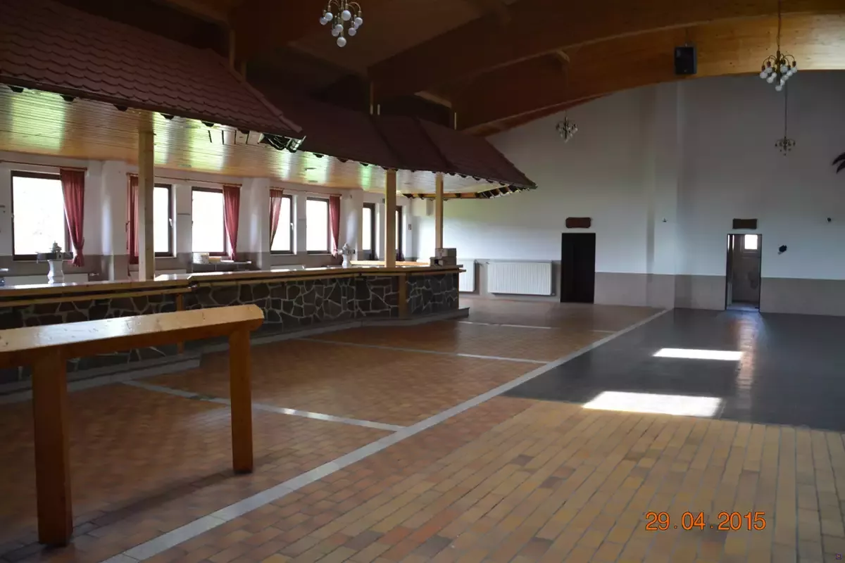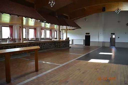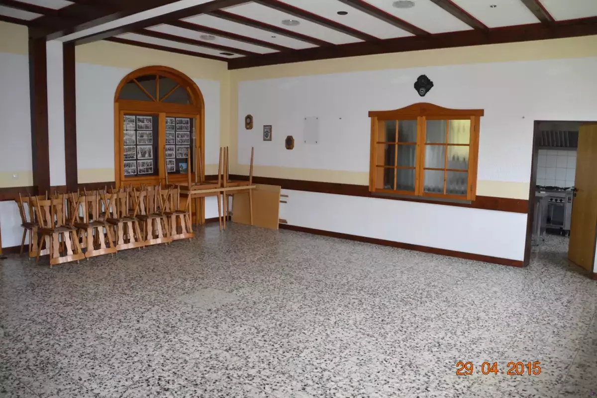 Es ist Platz für ca. 70 Personen vorhanden. Betten sind keine vorhanden, Feldbetten und/oder Matratzen müssten selbst mitgebracht werden. Die Küche ist komplett ausgestattet.