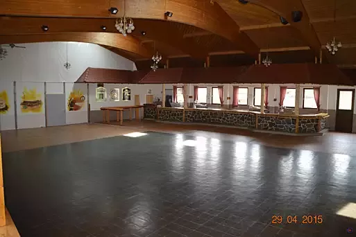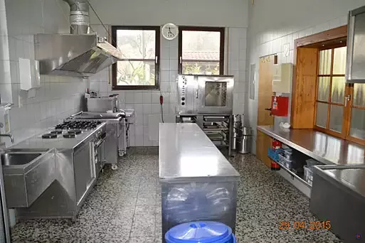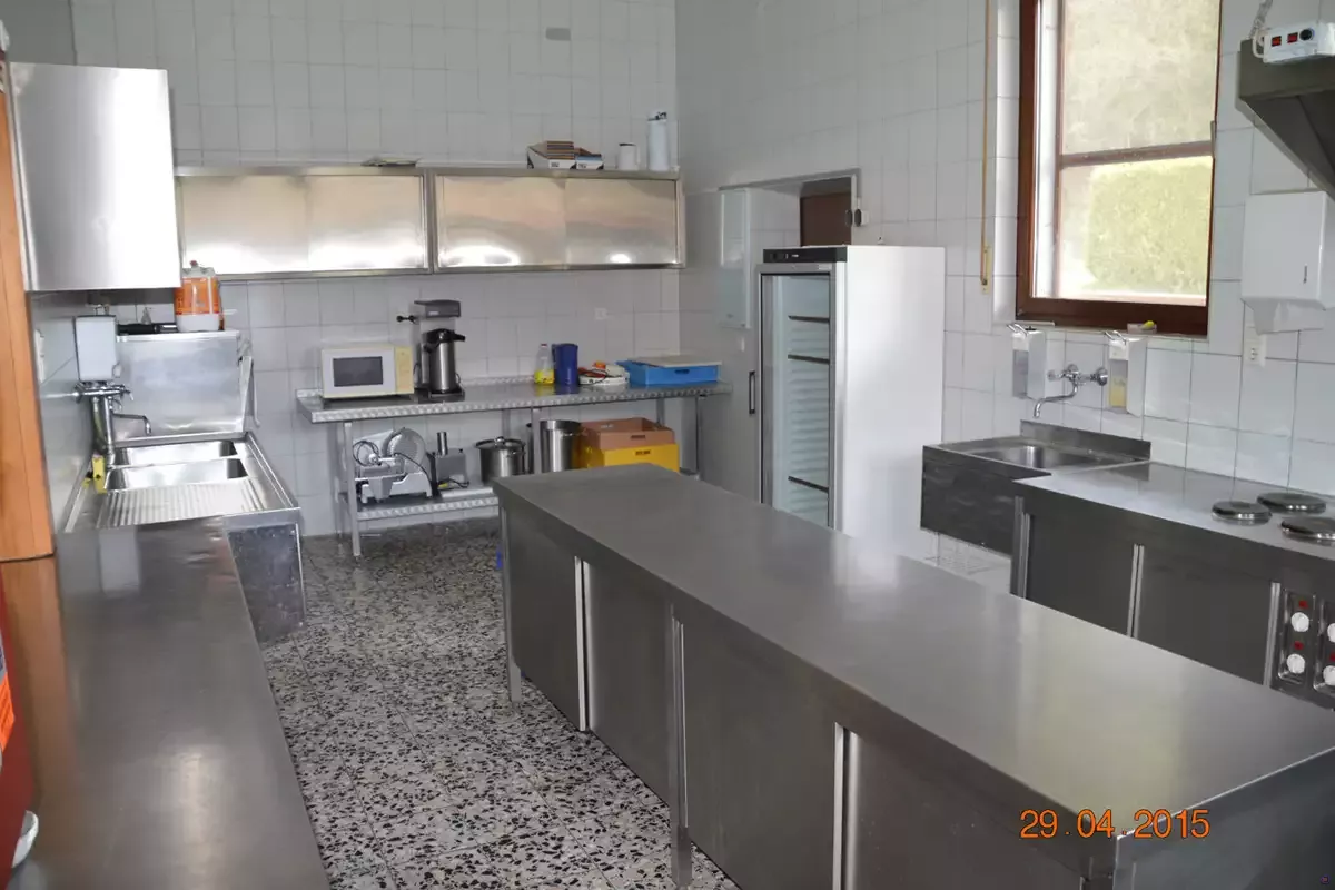 Es wird nur Selbstversorgung angeboten. Die Halle verfügt über eine komplett ausgestattete Küche.