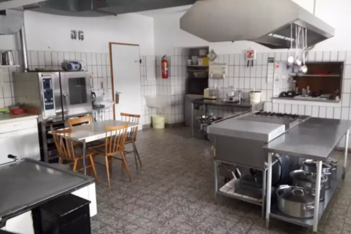 Saal mit Bühne, Billard, Fußballkicker.