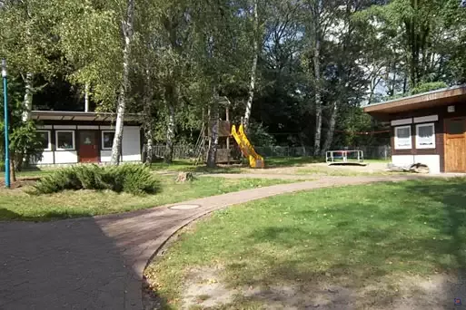 Das gesamte, großzügig angelegte Gelände ist durch einen Zaun eingefriedet und begrenzt. Es befinden sich hier Grünflächen für Ballspiel, 10 x 8 m Schwimmbecken, Tischtennis, Basketball, Fahrräder, ein Lagerfeuerplatz mit einem Großgrill.