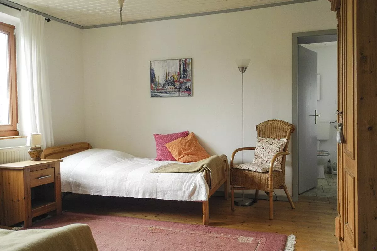 Ein Einzelzimmer, zwei Doppelzimmer, ein Dreier- und ein Vierer-/Fünfer-Zimmer über mehrere Etagen verteilt jeweils mit eigenem Bad und mit voll eingerichteter Gästeküche und Aufenthaltsbereich sowie eine moderne Wohnung im Erdgeschoss stehen zur Verfügung.