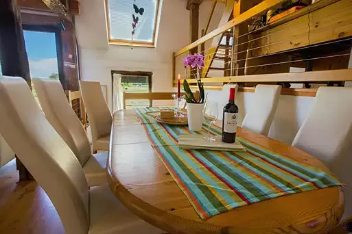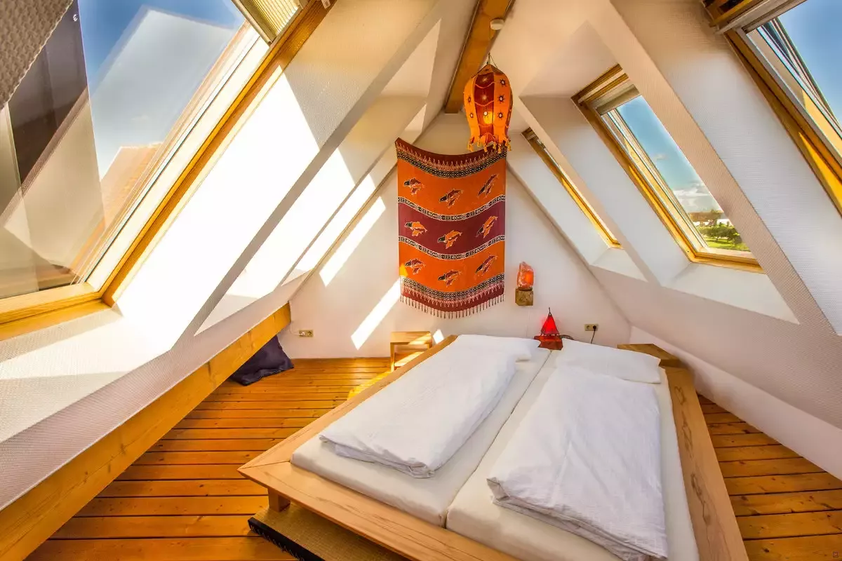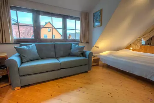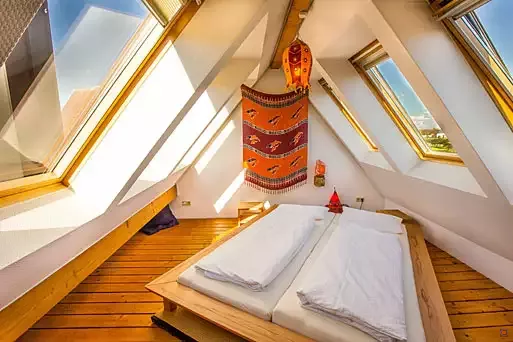 Unsere Komfortbelegung im Ferienhaus Schwarzwald beträgt 6 bis 8 Erwachsene. Dies verteilen sich bequem auf drei Schlafzimmer (Schlafzimmer 1, Schlafzimmer 2, Schlafgalerie). Das Ferienhaus lässt sich auch als Seminarhaus Schwarzwald oder Gruppenraum Schwarzwald für Workshops, Arbeitstreffen und Klausuren nutzen. Die Maximalbelegung für eine größere Gruppe liegt mit Einschränkungen bei 12 Personen. Hierzu gibt es 2 frei plazierbare Gästebetten sowie ein modernes Schlafsofa am Aufgang zur Galerie.
