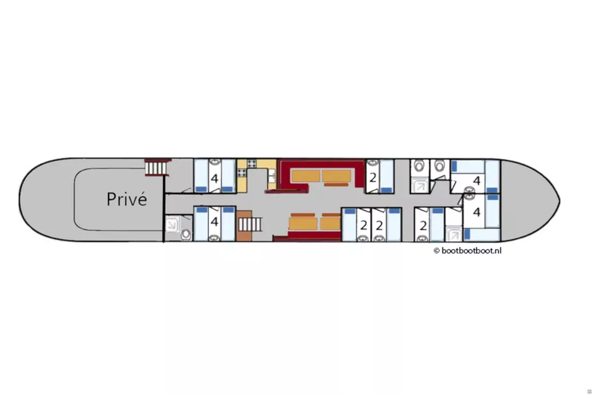 24 Personen können in 4 Zweibettkabinen und 4 Vierbettkabinen unterbebracht werden.
