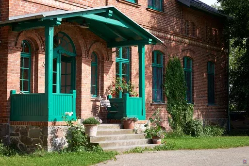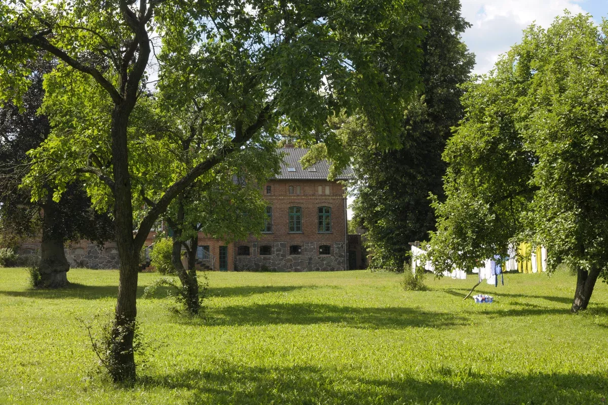 Das denkmalgeschützte, alte Gutshaus und die schlichte, ebenfalls denkmalgeschützte Scheune gehören zum ehemaligen Gutshof, dem Seminarhaus Neu Schönau.