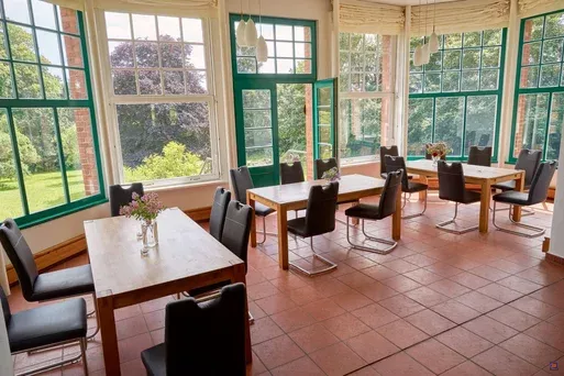 Der Wintergarten wird als Speisesaal bzw. Aufenthaltsraum genutzt und eignet sich besonders für Veranstaltungen, die eine Bestuhlung voraussetzen.