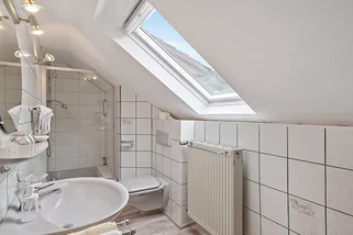 Ein Teil der Zimmer verfügt über ein eigenes Bad, weitere nutzen gepflegte Gemeinschaftsbäder auf den Etagen. Die Ausstattung ist bewusst schlicht und stimmig gehalten, mit natürlichen Materialien und einer klaren Atmosphäre, die Rückzug und Erholung unterstützt.