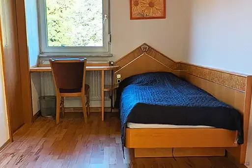 Im Haus befinden sich insgesamt 16 Gästezimmer auf drei Etagen mit verschiedenen Belegungsoptionen, von Einzelzimmern bis Mehrbettzimmern. Ein Teil der Zimmer verfügt über eigenes Bad, weitere nutzen gepflegte Gemeinschaftsbäder. Dadurch entsteht Flexibilität in der Preisgestaltung und in der Zusammensetzung der Gruppe.