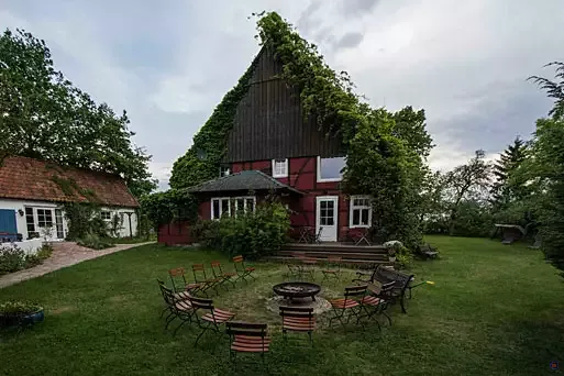 Der denkmalgeschützte, historische Vierständerhof liegt am Rande des kleinen, wendländischen Dorfes Kassau. Vier Gebäude bilden einen idyllischen Innenhof, welcher über eine Terrasse direkt mit dem Essensraum verbunden ist.
