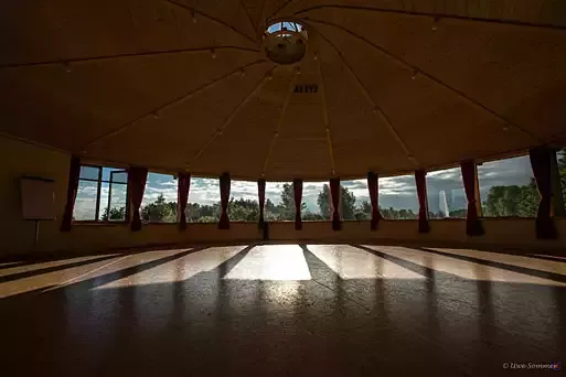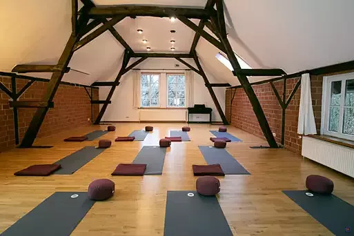 Auf der ersten Etage des Gästehauses sind sechs Zimmer. Hier befindet sich auch der Seminarraum (Yogaraum). Diese Kombination von Zimmern und dem Yogaraum ist besonders geeignet für kleine Gruppen, die ganz ungestört sein wollen.