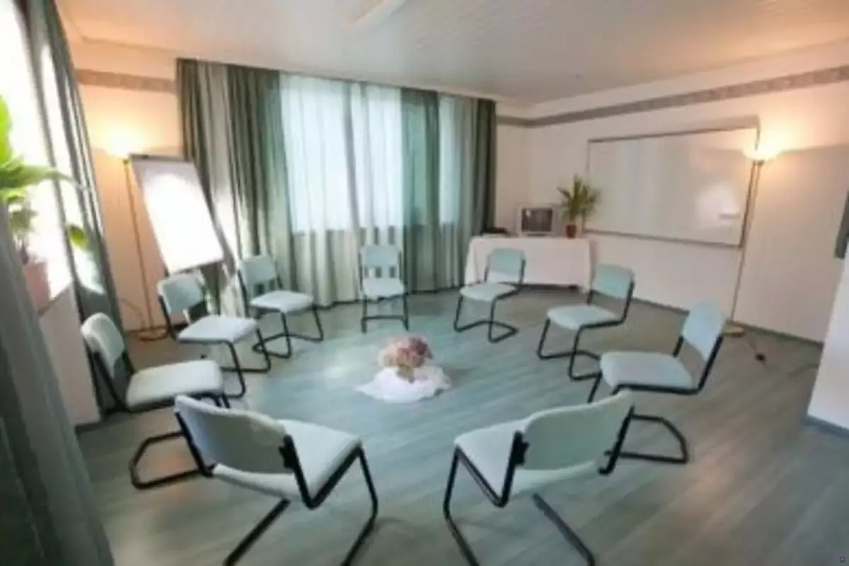 Dieser elegante, ganz in grün gehaltene Konferenzraum mit grünem Laminatfußboden und hellem Tageslicht ist speziell für Trainings, Supervisionen, Tagungen, Chorproben, Gesprächsgruppen, Kleingruppenarbeit, Familientreffen sowie Mal- und Musikgruppen geeignet.