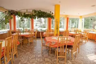 Unser Haus mit Sonnenterrasse liegt in idyllischer Waldrandlage. Durch den Garten mit kleinem Feuchtbiotop gelangen Sie direkt in den Wald. In unserem freundlichen, lichtdurchfluteten Speisesaal genießen Sie die liebevoll zubereiteten Speisen, die in Bufettform angeboten werden.