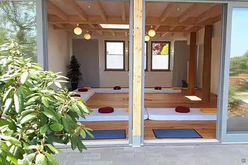 Sehr licht und sonnig ist unser neuester, ganz in gelb gestalteter Gruppenraum. Er ist quadratisch geschnitten und hat einen Holzparkettboden mit Fußbodenheizung. Bezaubernd ist seine Feldrandlage mit direktem Zutritt zum angrenzenden Garten. Er eignet sich besonders für Massagekurse, Trommel-Workshops, Atemtherapie und jede Art von Licht- und Energiearbeit.