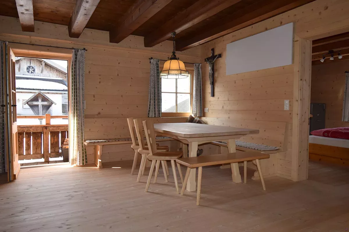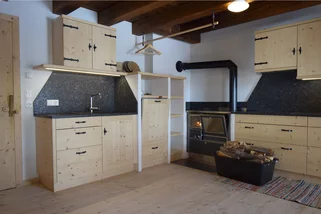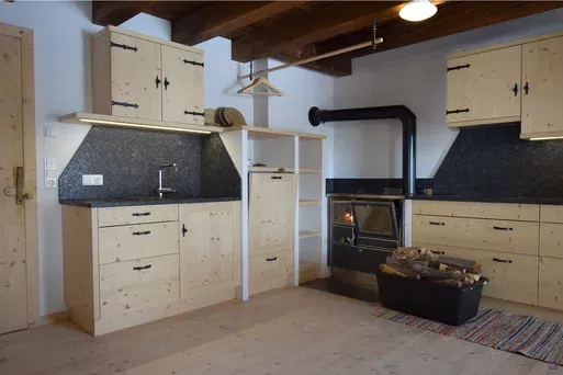 Nach einem aktiven Tag lädt die Hütte zu entspannten Stunden in geselliger Runde ein. Die großzügig ausgestattete Küche bietet alles, was für gemeinsames Kochen benötigt wird. Wer es besonders urig mag, kann seine Mahlzeiten ganz klassisch am Holzherd zubereiten. Umfangreiche Küchenausstattung, ein großer Kühlschrank für Gruppen sowie ausreichend Stauraum für Vorräte sind vorhanden. Am rustikalen Holztisch in der gemütlichen Stube klingt der Abend in angenehmer Atmosphäre aus.