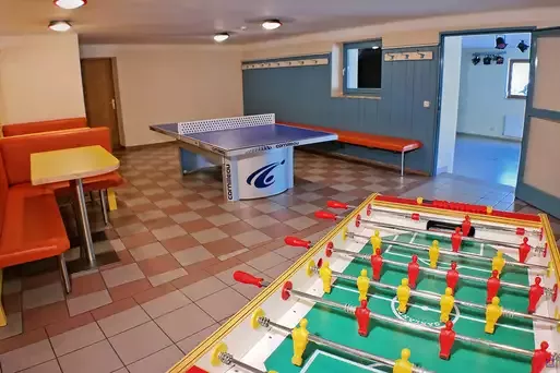 Im Haus könnt ihr euch in einem der fünf Essens- und Aufenthaltsräume aufhalten. Im Keller gibt es neben dem Spieleraum mit Tischkicker und Tischtennisplatte auch einen Mehrzweckraum mit Bühne und Musikanlage, der für Theaterstücke oder eine Party ideal geeignet ist.