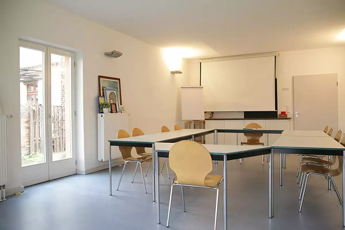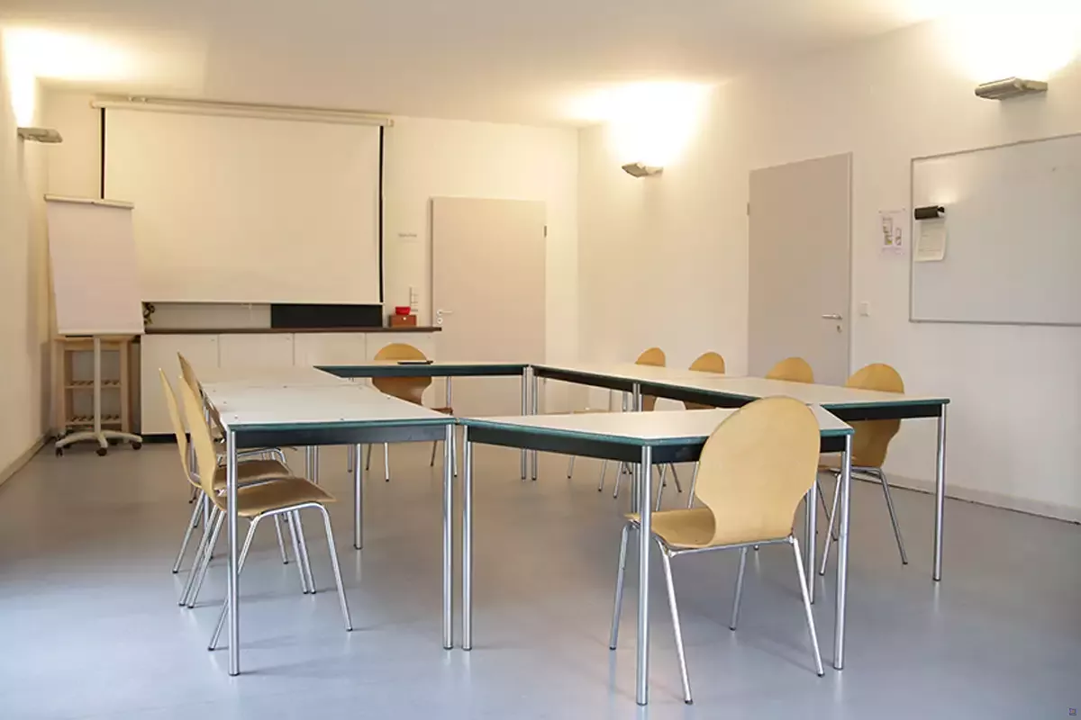Im Haus gibt es keine extra Seminarräume. Ihr könnt die Tische im Speisesaal verrücken – dann kann es losgehen. Natürlich gibt es WLAN im Haus, eine Leinwand, ein Whiteboard, Flipcharts und Moderationswände. Zusätzlich kann ein Beamer und Moderationsmaterial gegen Gebühr ausgeliehen werden.