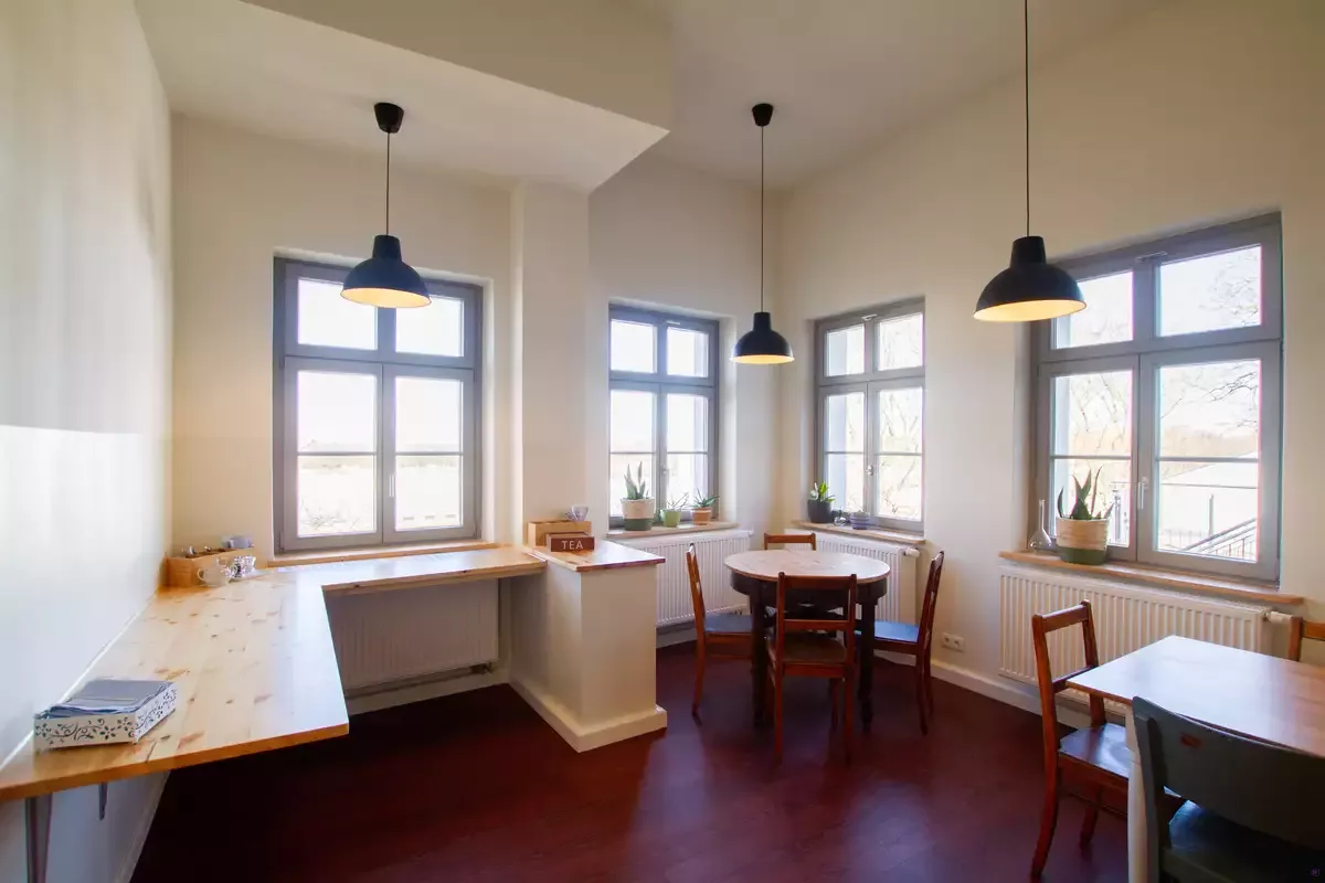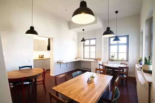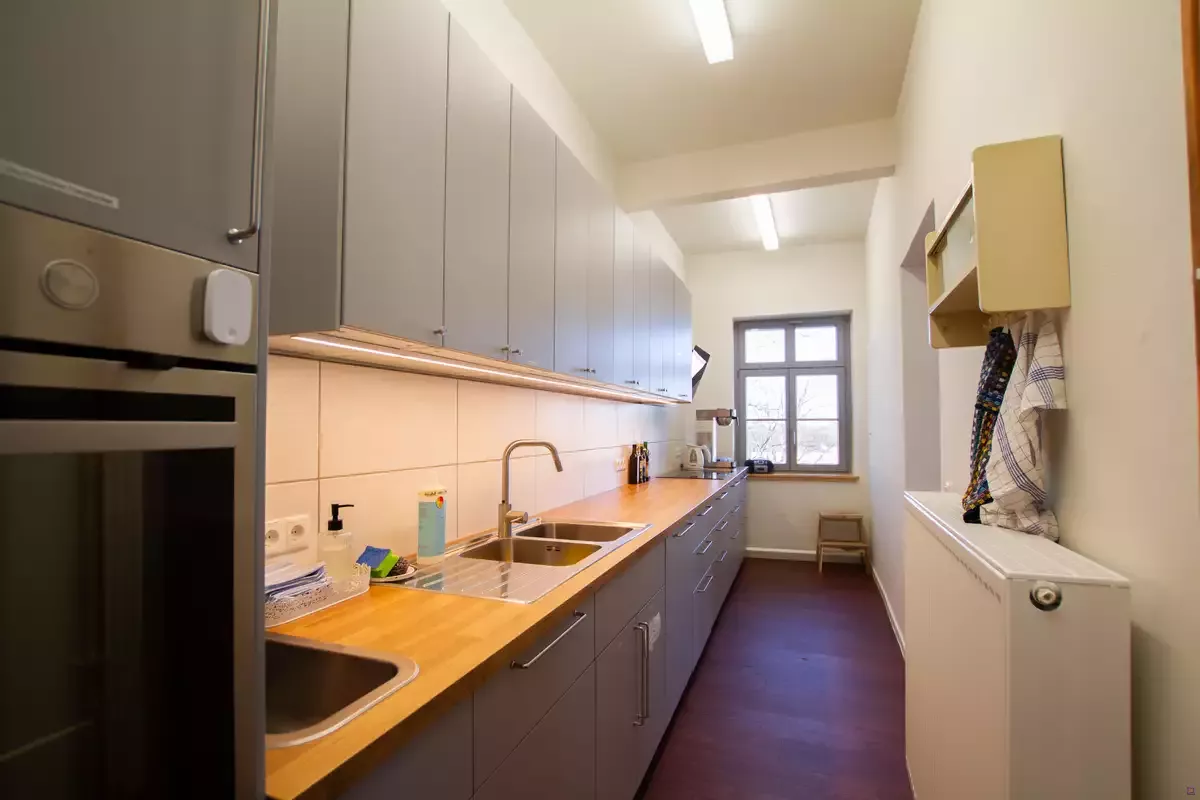 Zuverlässige Kommunikation und schnell Antworten. Super Angebot für große Gruppen. Auch für Familien Kurz Urlaub geeignet. Sauber und ordentlich. Sehr zentral mit wunderbarer Anbindung an Leipzig für Kurzausflüge. Herrlich Terrasse. Kleine Spielesammlung und Tischtennisplatte zur Unterhaltung vorhanden. Gemütliches Gemeinschaftszimmer. Gut ausgestattete und geräumige Küche. Schlicht, aber hübsch eingerichtete Zimmer. Leider nur ein Schlüssel für den Haupteingang. Für mehrere Familien mit kleinen Kindern nur 1 Kinderbett und 1 Kinderstuhl. Die schweren Brandschutztüren schließen laut und sind für kleine Kinder schwer zu öffnen. Insgesamt zu empfehlen. Wir haben uns sehr wohl gefühlt.